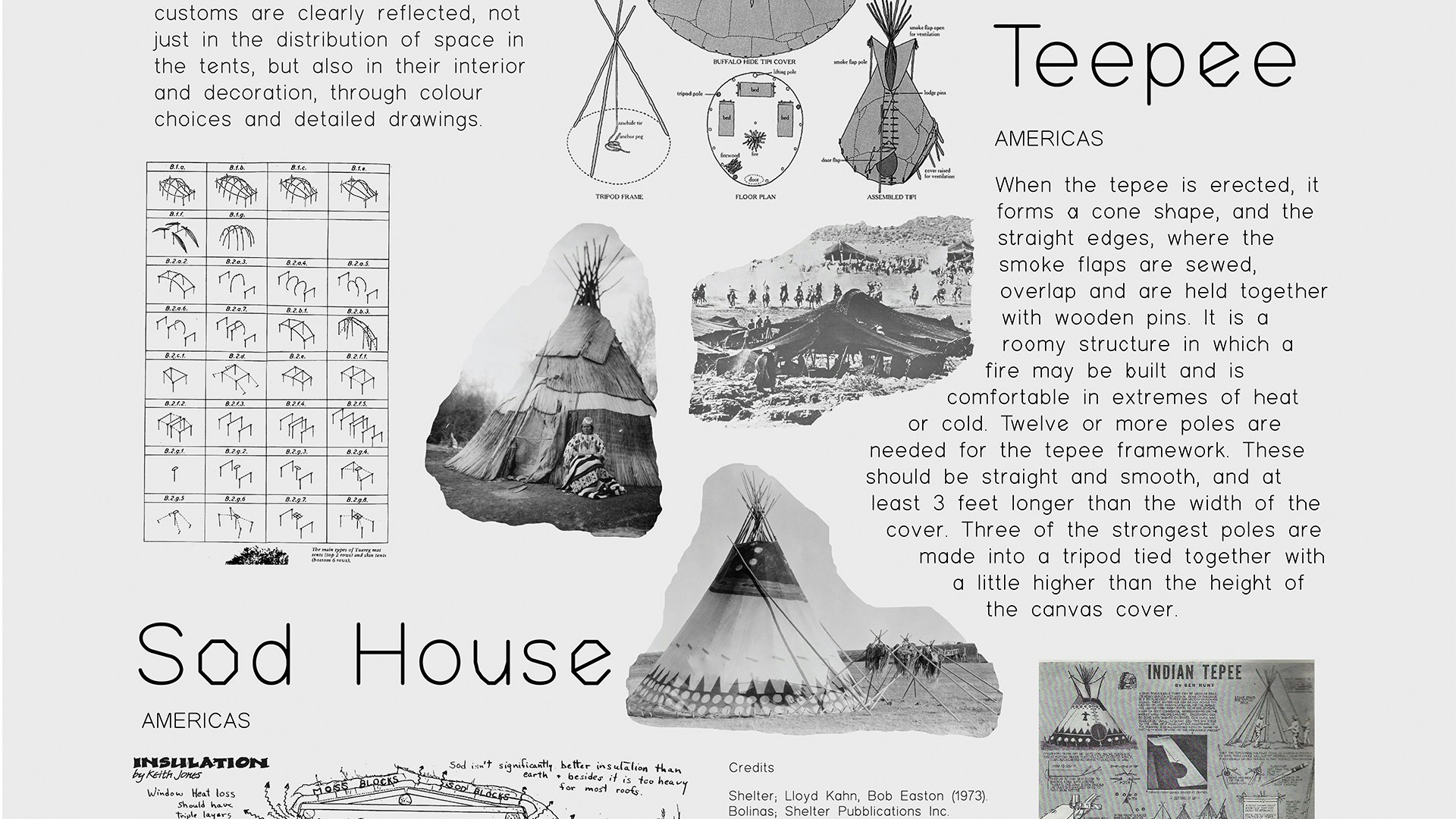 Taking the basics of human needs as a starting point, each shelter was defined as a symbol of human evolution and response to an environmental and societal challenge. ‘No_Code Shelter’ was conceived as the synthesis of the obsessive long research that Lloyd Kahn, Stewart Brand, D.C. Beard and other experts have started last century. The ‘Whole Earth Catalog’ and the ‘Shelter publishing’ projects were re-elaborated to narrate the methodologies and the elements for housing and human life. RNDR was asked to design the visual language of ‘No_Code Shelter’.