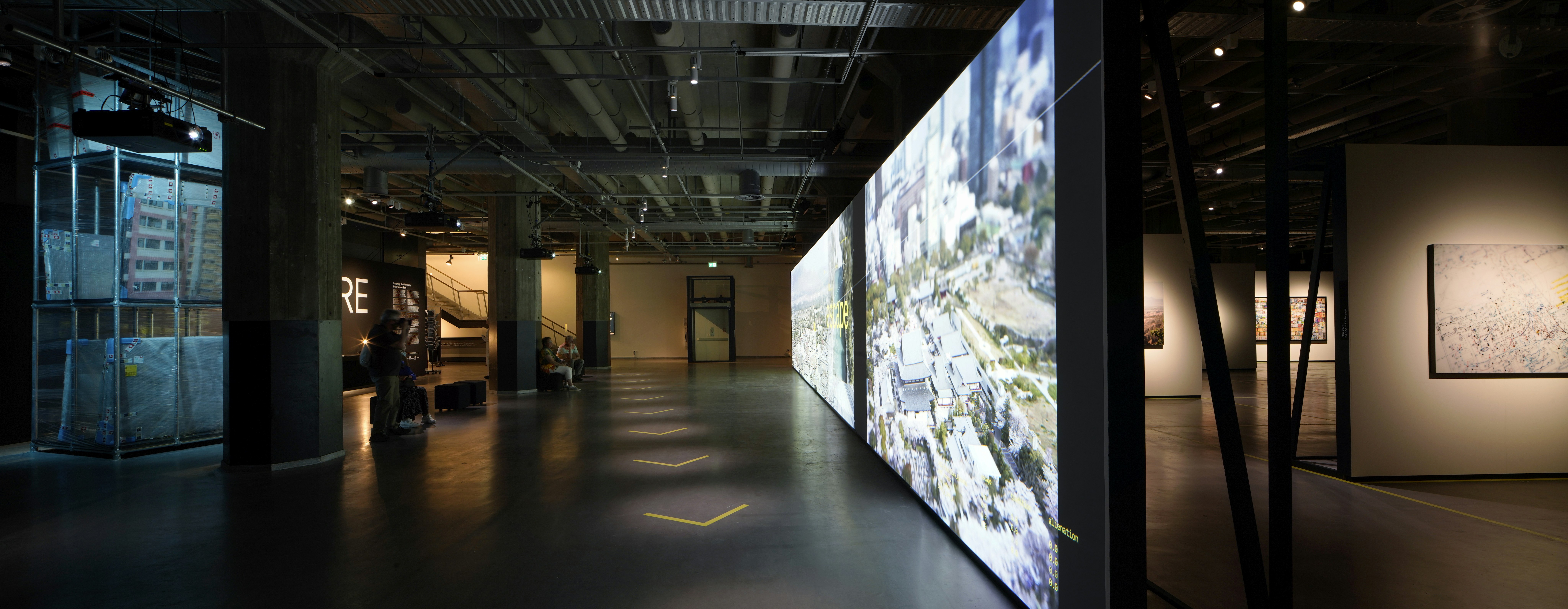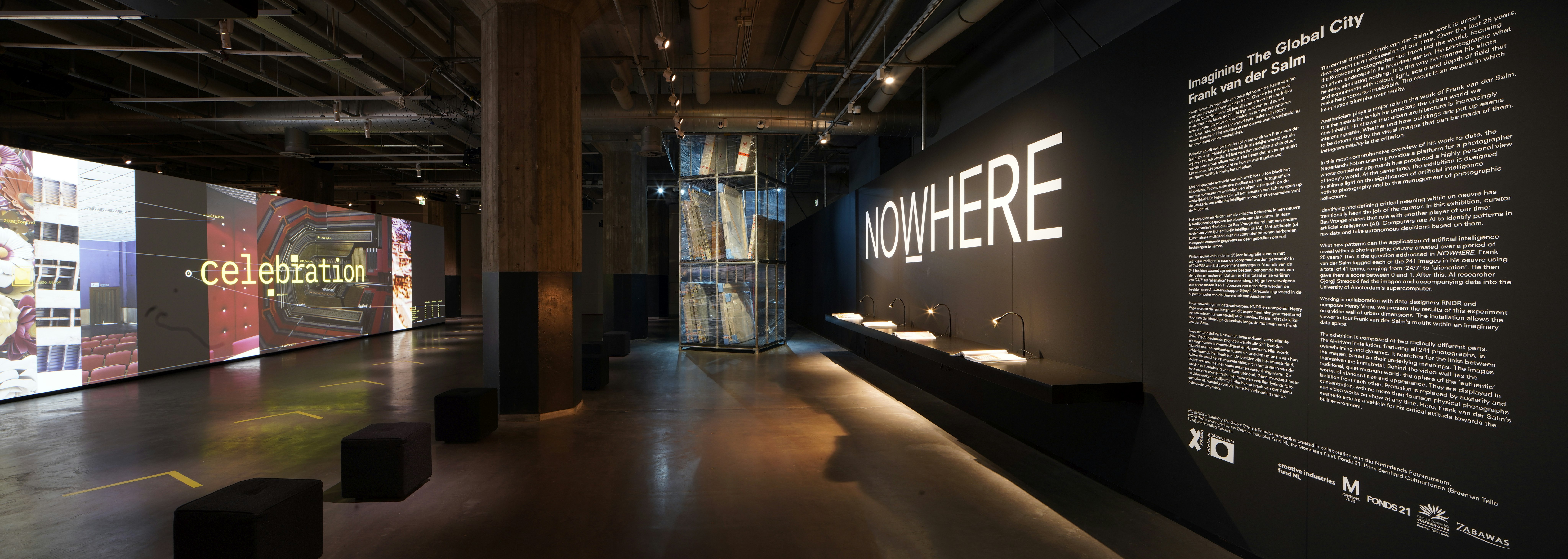 The central theme of Frank van der Salm’s work is urban development as an expression of our time. Over the last 25 years, Van der Salm has travelled the world, focusing on urban landscape in its broadest sense. Aestheticism plays a major role in his work. It is the means by which he criticizes the urban world we now inhabit. NOWHERE, bringing together Frank van der Salm’s body of work from the past 25 years, is composed of two radically different parts. The Artificial Intelligence-driven installation, featuring all of his 241 images, is overwhelming and dynamic. It visualises the links between the works, based on their underlying meanings. The images themselves are immaterial. Behind the video wall lies the traditional, quiet museum world: the sphere of the ‘authentic’ works, each with it’s specific size and appearance. They are displayed in isolation from each other. Profusion is replaced by austerity and concentration, with no more than fourteen physical photographs and video works on show at any time. Here, Frank van der Salm’s aesthetic acts as a vehicle for his critical attitude towards the built environment.
